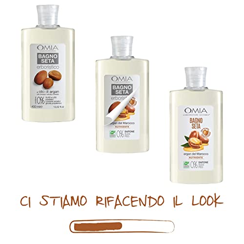 Omia, Bagno Seta Erboristico all'Olio di Argan del Marocco, Bagnoschiuma per Pelli Aride e Irritabili, Rende la Pelle Elastica e Protetta, Dermatologicamente Testato - Flacone da 400 ml