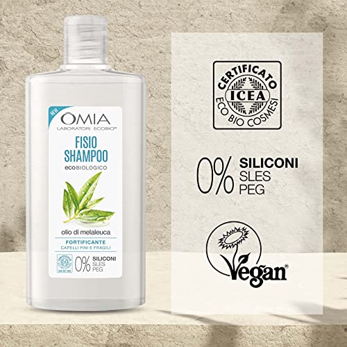 Omia, Fisio Shampoo Trattante con Olio di Melaleuca, Per Capelli Fini e Fragili, Fortificante, Ristrutturante per Lavaggi Frequenti, Senza Siliconi e SLES, 3 Flaconi da 200 ml - Esclusiva Amazon