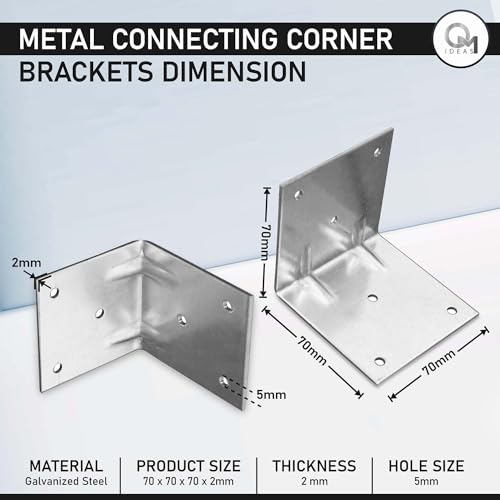 OMIdeas 10 x Staffe angolari ( 70 x 70 x 70 ) Squadretta giunzione, Piastra Staffa angolare a 90 gradi, Connettore di fissaggio per mobili in legno, zincato argento
