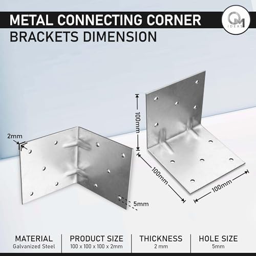 OMIdeas 10 x Staffe angolari (100 x 100 x 100) Squadretta giunzione, Piastra Staffa angolare a 90 gradi, Connettore di fissaggio per mobili in legno, zincato argento