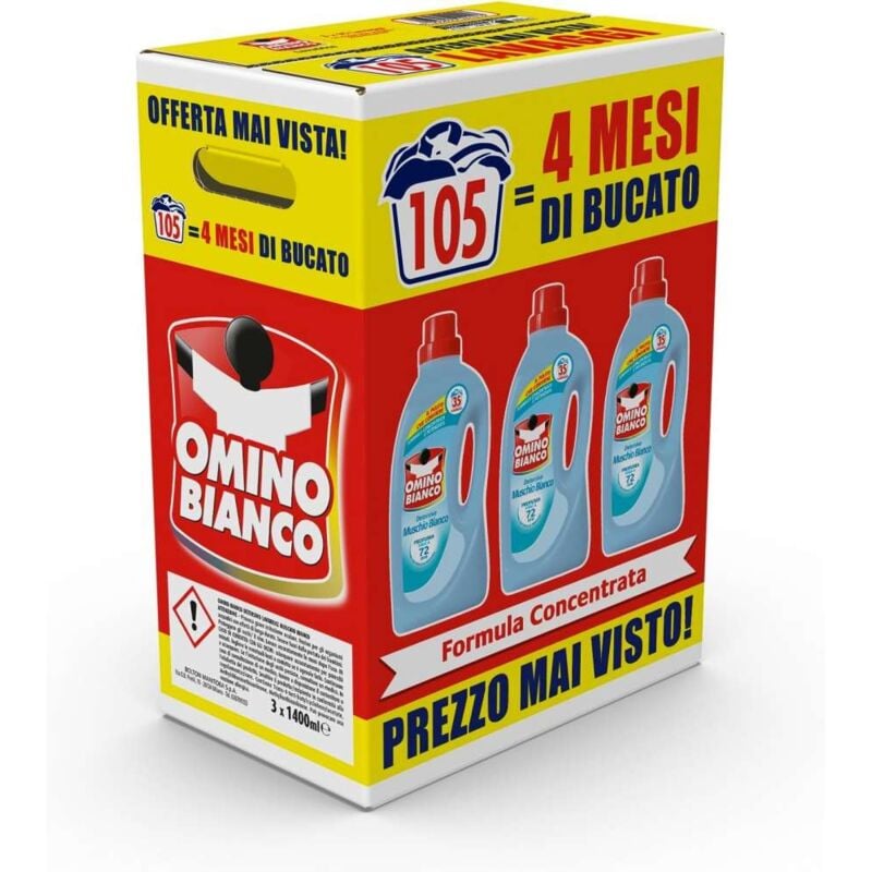 Detersivo liquido per lavatrice Omino Bianco formato risparmio: 3 flaconi da 35 lavaggi. Pulisce in profondità, rimuove le macchie più difficili, profumo a lungo.. Acquistalo subito da CFadda e ricevilo comodamente a casa.