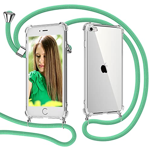 Omitium Cover iPhone SE 2020 Tracolla, Trasparente Custodia con Collana iPhone 8 Bumper con Cordino Antiurto Antiscivolo Case iPhone 7 con Angoli Rinforzati Cordoncino iPhone SE 2020/8/ 7, Verde