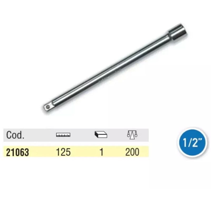 Prolunga OMMA da 125 mm con attacco quadro maschio e femmina da 1/2 in acciao al cromo vanadio - cromate. Lunghezza totale 125 mm.