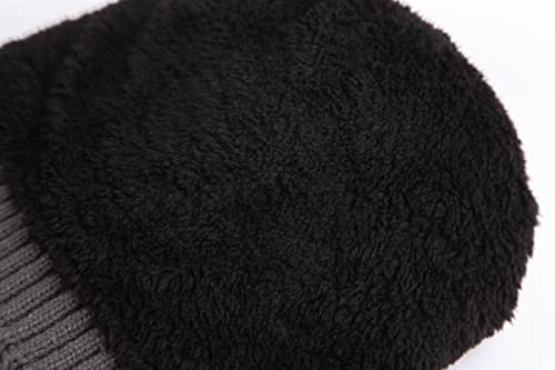 Ommda Cappelli Invernali Uomo Cappelli Sciarpa e Guanti Set Fodera in in Maglia Beanie con Pompom Guanti Touch Screen Guanti Nero
