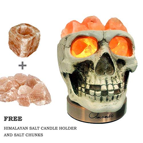 Omonic(2-3kg) lampada di sale dell'Himalaya himalayano, lampada da tatuaggio a forma di teschio 3D lampada da notte scolpita con pezzi di sale bianco rosa himalayano, comando dimmer con 1 candela di sale