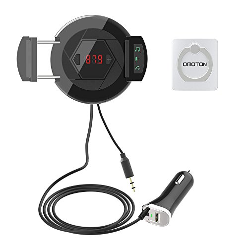 OMOTON kit per auto 3 in 1, Trasmettitore Bluetooth Wireless per auto, adattatore, caricabatterie super veloce, radio FM, con 5 V/2.1 A USB, microfono per chiamate handfree e supporto telefono con rotazione fino a 360 ° (supporto anello in regalo)