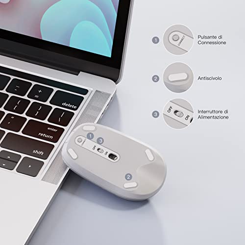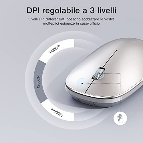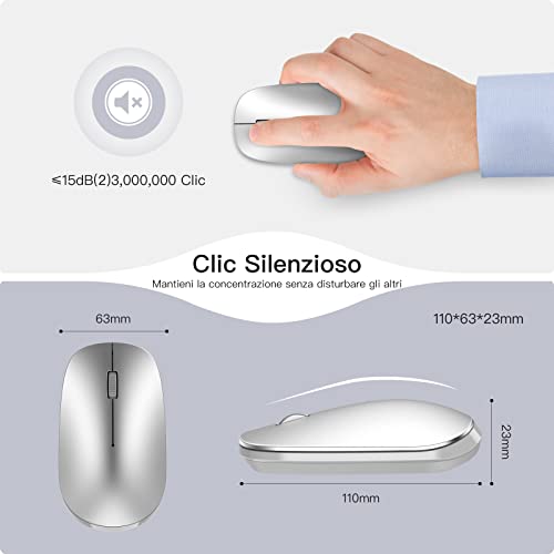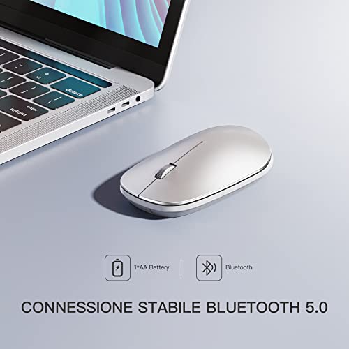 OMOTON Mouse Bluetooth per Mac OS, Wireless Compatibile con MacBook air/pro, iMac, ipad, Computer, Laptop, PC, Notebook con Windows,, Linux e Android, Argento