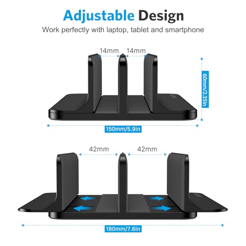 OMOTON Supporto Verticale per Laptop, Doppio Slot in Alluminio per Computer e Tablet, Salvaspazio Compatibile con MacBook/iPad/HP/Microsoft e Altri Laptop(fino a 17,3 pollici), Nero