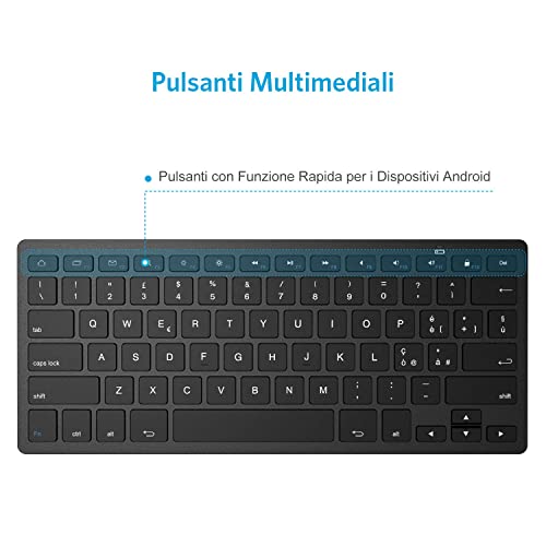 OMOTON Tastiera Bluetooth per Android, Compatibile con Samsung o Huawei Tablet e i Smartphone Android, Layout Italiano, Leggera e Sottile, Nera
