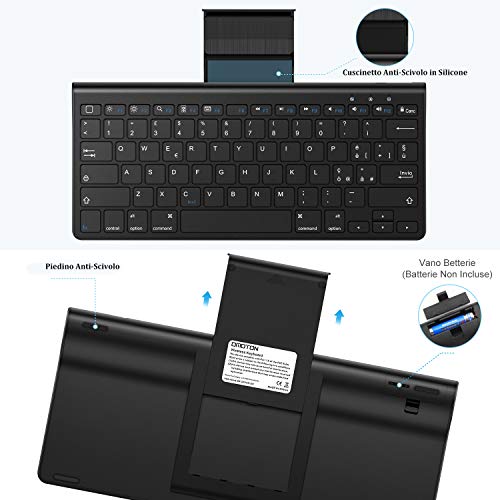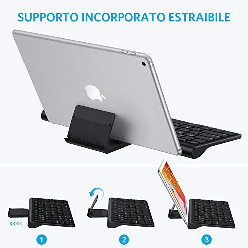 OMOTON Tastiera Bluetooth con Supporto Estraibile Compatibile con iPad 10.2, iPad PRO 10.5/11/ 12.9/9.7, iPad Air 5 10.9/4/3/2/1, iPad Mini e Tutti i Tablet iPad ed iPhone, Nero