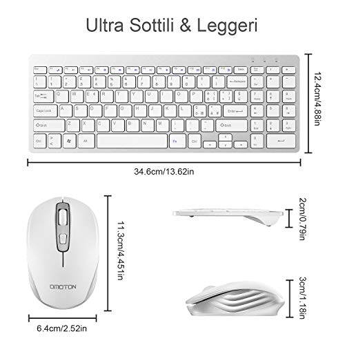 OMOTON Set di Tastiera Wireless e Mouse, Tastiera Ultra-Sottile da 2,4 GHz e Mouse Muto - Ricevitore USB Incluso per Desktop/Laptop con Windows XP/7/8/10/Vista, Bianco
