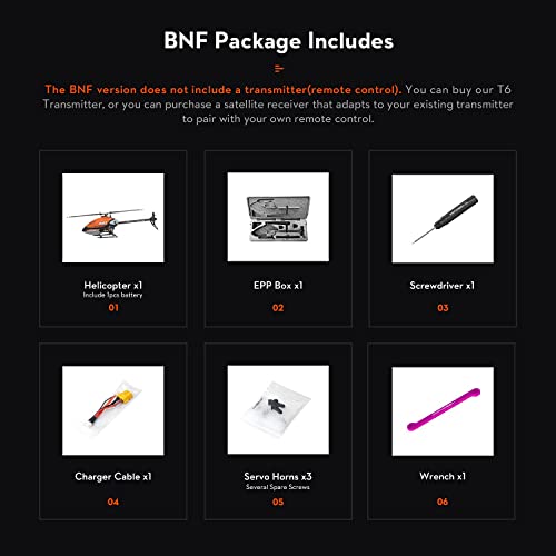 【INDICA IL LIVELLO DELLA BATTERIA】: il nostro supporto del trasmettitore T6 per la trasmissione del segnale bidirezionale consente la telemetria di potenza dell'aeromobile e fornisce il livello della batteria dell'elicottero OMP M1 RC al trasmettitore durante il volo. T6 può essere utilizzato continuamente per circa 25 ore con una singola carica, ma deve essere acquistato in più.