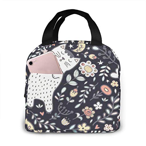 OMQFEW Borsa Termica Pranzo, Porta Pranzo Termico, Borsa Termica Piccola, Borsetta Porta Pranzo Termica, Borsa Pasto, Borsa Portapranzo per Lavoro Picnic Gatto Senza Cuciture Che Dorme