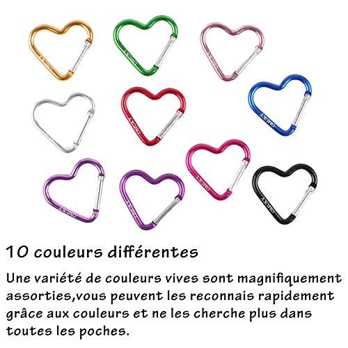 OMUKY 10 pz Cuore Forma Moschettone Prote Chiavi Alluminio Multicoulor Piccolo Moschettone per Pesca Escursionismo Zaino (10 Colore-Cuore)