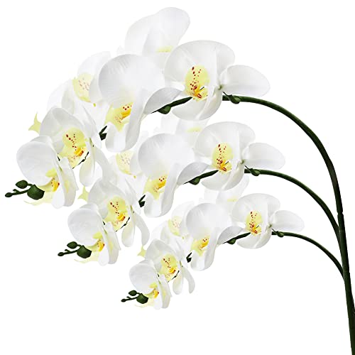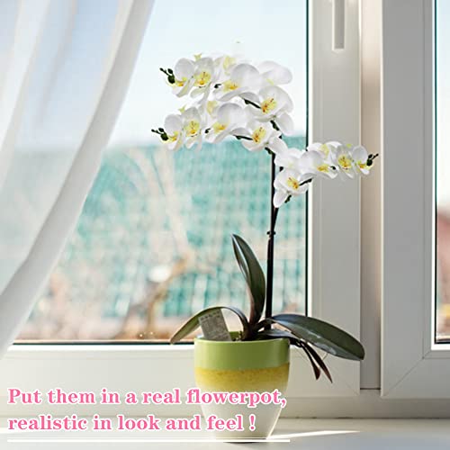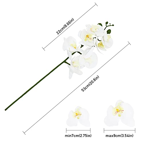 Omygarden Fiori di orchidea artificiali bianchi, Phalaenopsis, 7 fiori che sbocciano, 53 cm di lunghezza, centrotavola per feste di matrimonio, giardino di casa, decorazione floreale