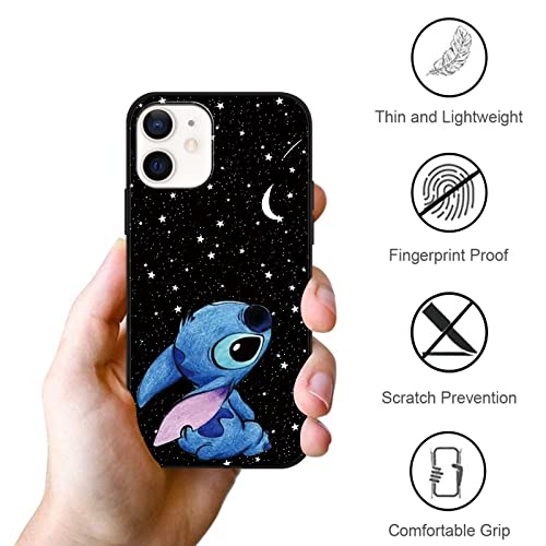 Omyzo [2 pezzi Cover per iPhone 12/12 Pro 6,1" Stitch,Cartone Animato Morbido Silicone TPU Freddo Divertimento Divertente Custodia per Bambini Ragazze Donne Nero Protettivo Case