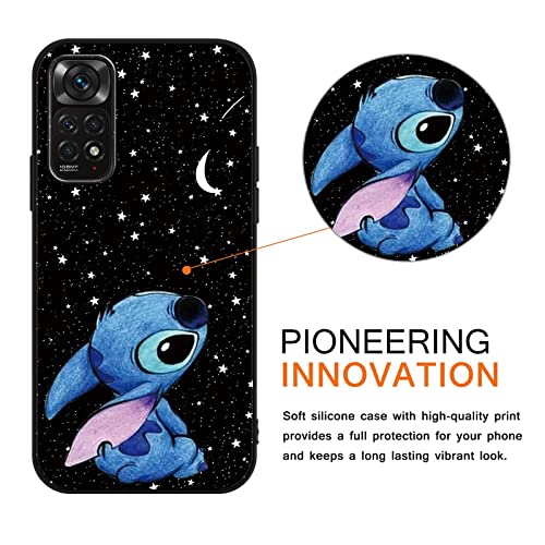 Omyzo [2 pezzi Cover per Xiaomi Redmi Note 11S/11 4G 6,43" Stitch,Cartone Animato Morbido Silicone TPU Freddo Divertimento Divertente Custodia per Bambini Ragazze Donne Nero Protettivo Case
