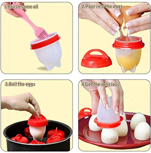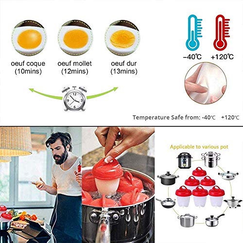 OMZGXGOD Cuoci Uova sode Senza Guscio, Stampi per Uova sode, Set di 6 stampi per Uova sode, cuoci Uova Anti Aderente in Silicone