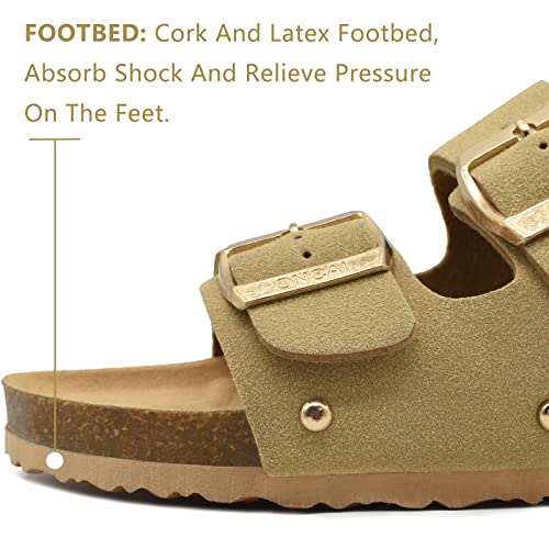 ONCAI Ciabatte Donna Estive Sandali Sughero Plantare Dobbia Fibbia Moda Sandali Antiscivolo Gomma Suole Pantofole Leggero Cachi 43