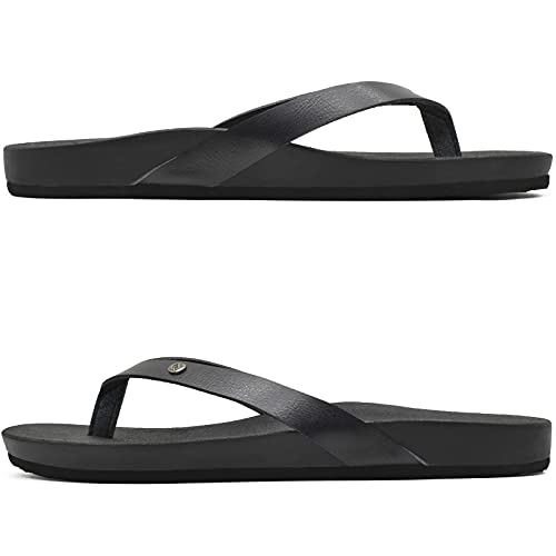 ONCAI Infradito Donna Estivi Piscina Ciabatte Infradito Donna Comodi Cinturino In Pelle Spiaggia sandali Supporto Arco Gomma Suola Flip Flop Imbottiti Morbidi Antiscivolo Tanga Pantofole Nero 42 EU