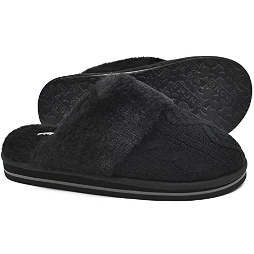 ONCAI Pantofole Donna con Supporto per Arco Maglia Inverno Caldo Soffice Pelliccia Ortopedici Ciabatte da Casa Memory Foam Gomma Antiscivolo Nero Dimensione 42