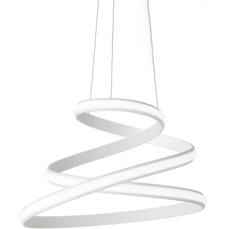 Sospensione VUELTA in metallo verniciato, con sorgente luminosa Led integrata dimmerabile. Cavetti regolabili in lunghezza. Le sue linee sinuose creano un simpatico movimento nella stanza e incantano la vista. Un lampadario dal design moderno, ideale per arredare e illuminare con originalita' il vostro soggiorno living o la sala da pranzo. . Il lampadario a sospensione VUELTA e' realizzato interamente in metallo verniciato, con una sorgente luminosa LED dimmerabile. CARATTERISTICHE Colore: Bianco Materiale: Metallo verniciato Tipologia: Lampadario a sospensione Diametro: 57 cm Altezza struttura: 35 cm Altezza max: 215 cm Dimmerabile: si Illuminazione: LED integrato Potenza: 50W 2863-5000LM Input: 220-230V Colore luce: 3000K