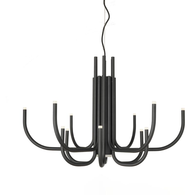 Sospensione NOUVEAU in metallo verniciato a polvere, composta da 12 braccetti LED piu' un LED centrale. Cavetti regolabili in lunghezza. Lo stile contemporaneo si fonde con la tecnologia Led dando vita a un lampadario dal design originale, perfetto per arredare e illuminare con originalita' un soggiorno, una cucina ma anche locali pubblici. . Il lampadario a sospensione NOUVEAU e' realizzato interamente in metallo verniciato, composto da struttura cilindrica centrale con led integrato da cui si diramano 12 braccetti Led CARATTERISTICHE Colore: Nero Materiale: Metallo verniciato Tipologia: Lampadario a sospensione Larghezza: 78 cm Altezza struttura: 52 cm Altezza max: 242 cm Profondita': 78 cm Dimmerabile: si Illuminazione: LED integrato Potenza: 46W (3W x 12 + 10W) 1433-2350LM Input: 220-230V Colore luce: 3000K