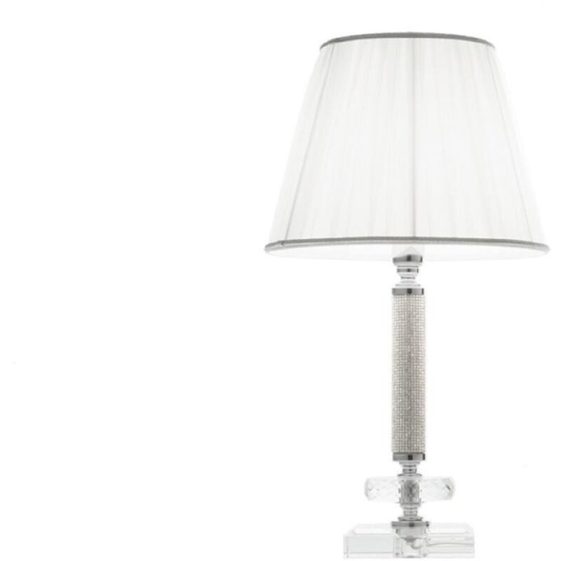 Lampada da tavolo DIDO realizzato interamente in vetro trasparente lavorato a mano con montatura e portalampade in metallo e dettagli in cristallo ottico. Un elemento che arreda e illumina ogni stanza con eleganza. CARATTERISTICHE Colore: Cromo Materiale: Vetro, metallo Tipologia: Lampada da tavolo Modello: Piccolo Altezza: 46 cm Larghezza: 25 cm Profondita': 25 cm Dimmerabile: NO Illuminazione: 1 x E14 (L'attacco E14 permette di installare lampadine a LED, fluorescenti o alogene non incluse). Input: 220-230V