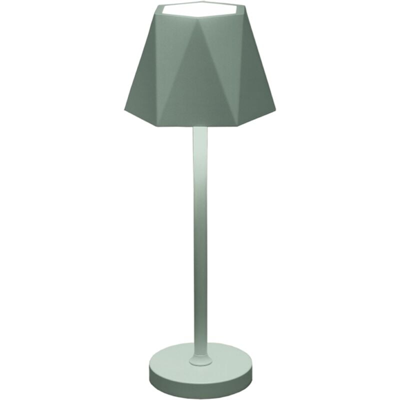 Lampada da tavolo FIJI a LED ricaricabile tramite cavo USB. Pratico sistema touch per dimmerare la luce,accendere e spegnere la lampada. Autonomia di 8 ore con il 100% di intensita' luminosa. La lampada e' dotata di sorgente led integrata con colore luce 3000K, bianco calda. La lampada FIJI a LED e' perfetta per arredare ambienti esterni o interni e grazie al grado di protezione IP54 non teme pioggia e agenti atmosferici. Pratica nel trasporto date le sue dimensioni contenute e l'assenza di fili,puo' essere utilizizzata per ristoranti,locali pubblici,attivita' commerciali,sale ricevimento o giardini. CARATTERISTICHE Colore: Salvia Materiale: Alluminio/ABS Struttura: Alluminio - Diffusore: ABS Tipologia: Lampada da tavolo Diametro: 12 cm Altezza: 38 cm Dimmerabile: Si Touch: Si Illuminazione: LED integrato Potenza: 3W 240-300 LM Input: 220-230V Colore luce: 3000K Grado di protezione: IP54 Batteria ricaricabile tramite cavo Micro-USB Durata in base alla luminosita': 8/48 ore