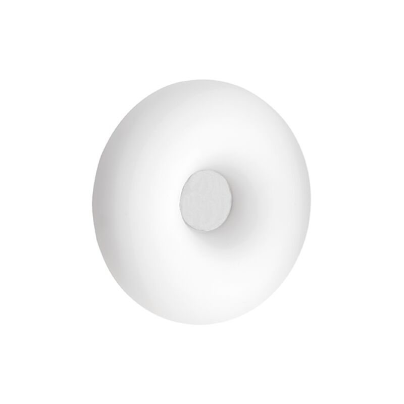 Plafoniera DODI in vetro soffiato ed acidato bianco Plafoniera DODI e' composta da un diffusore circolare a forma di anello realizzato in vetro soffiato ed acidato bianco. Tre decorazioni centrali incluse: bianco, tortora, nero. Una lampada dalle forme tondeggianti che si adatta con ottimi risultati estetici a ogni tipo di arredamento moderno. Installabile sia al soffitto che a parete, ideale per illuminare zone di passaggio e il soggiorno. Modello: PICCOLO Dimensioni: Diametro 33 cm / Spessore 10 cm Illuminazione: 2xE27 L'attacco E27 permette di installare lampadine a LED, fluorescenti o alogene (non incluse per nessun modello).