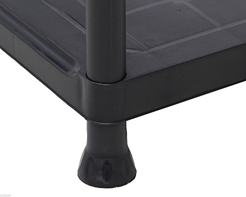 Scaffale in plastica resistente con 4 ripiani, colore: nero.