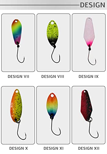 Ondulanti Cucchiaini da Pesca Esche Artificiali per Spinning Trota Persico Luccio Siluro. Spoon Kit. Compreso di comodo box per tenere tutto in ordine. Attrezzatura da pesca, irresistibile ai pesci.
