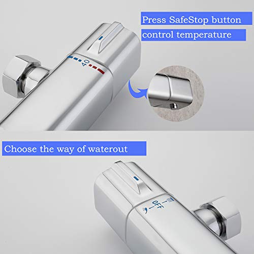 【Sicurezza Doccia】 Il termostato è dotato di un blocco di sicurezza a 40° C per evitare scottature e impedire ai bambini di impostare la temperatura dell'acqua troppo alta, puoi goderti una doccia sicura e confortevole ogni volta. Se vuoi aumentare la temperatura, puoi premere il pulsante di sicurezza.