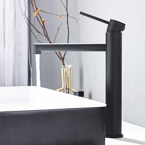 ONECE Rubinetto Bagno Lavabo Nero Alto, Rubinetto per Lavabo da Appoggio, Miscelatore Bagno Monocomando in Acciaio Inox 304, Rubinetti Lavabo Alto per Bagno, Acqua Calda e Fredda, Aeratore Rimovibile