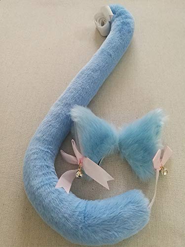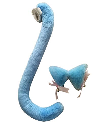 ONECHANCE Orecchie e Coda da Gatto Adulti Set Gatta Volpe Kits per Natale Party Cosplay Costume Accessorio Color Blu con Campanelli Size One Size
