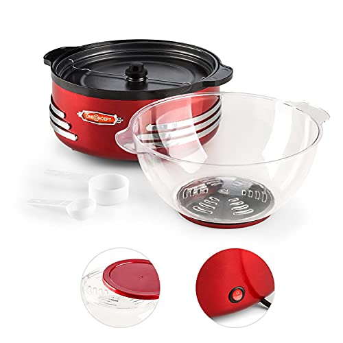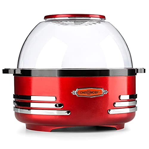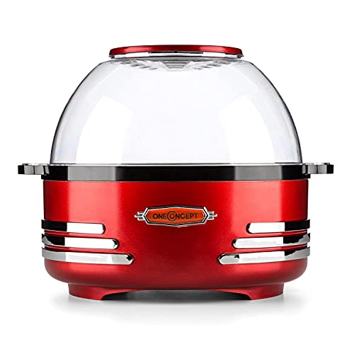 Oneconcept Couchpotato Macchina Per Popcorn Pop Corn Maker Elettrico (1000 Watt, Rivestimento Antiaderente, Coperchio Utilizzabile Come Piatto, Design Vintage) Rosso