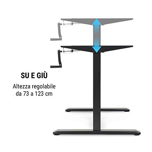 OneConcept Multidesk - Scrivania, Scrivania Regolabile in Altezza, Seduti e in Piedi, Comandi Manuali: Manovella, Regolabile in Altezza: 73-123 cm, Regolabile in Larghezza: 100-160 cm, Nera