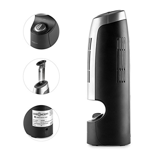 OneConcept St. Oberholz 2G - OB1, Ionizzatore, Depuratore d'Aria, Ventilatore, Potenza 2 W, Basso Inquinamento Acustico, Consumo Energetico Ridotto, Design a Torre, Colore Argento/Nero