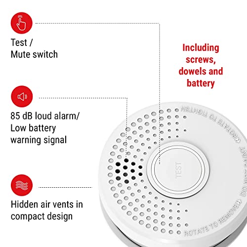 RISPOSTA RAPIDA SALVAVITA: Con un sensore ottico conforme alla norma EN 14604 e certificato, il nostro rilevatore di fumo per casa è in grado di rilevare anche il minimo accenno di fumo e avvisarti rapidamente con un allarme efficace da 85dB.