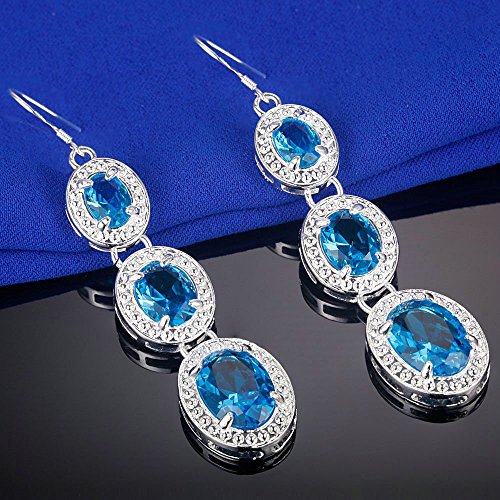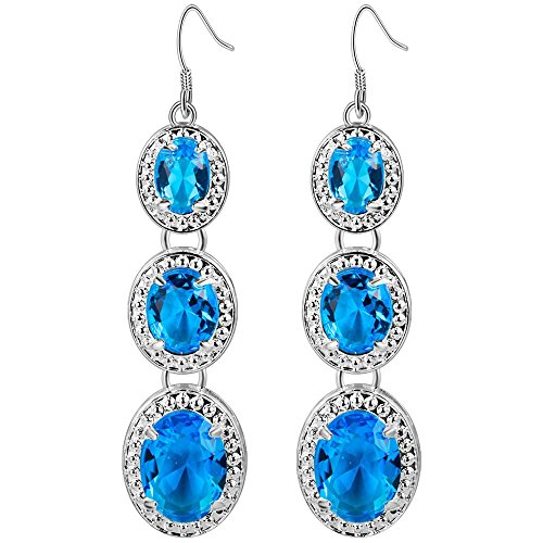 Onefeart Argento Sterling Orecchini a Vite Per Donne Ragazze Cristallo blu Corda Cristallo Ciondola l'orecchino 16x70MM