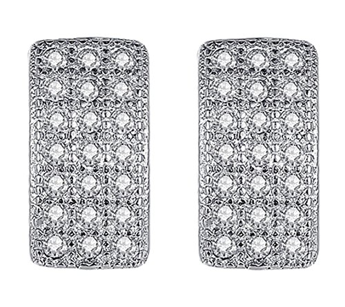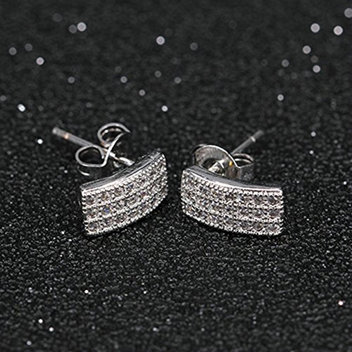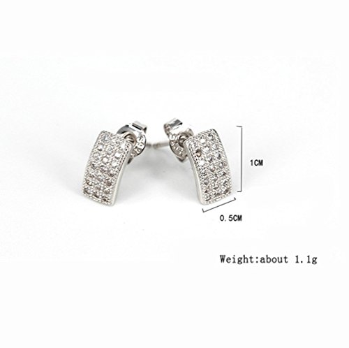Onefeart Oro Bianco Placcato Orecchini a Vite Rectangle Forma per Donne Bianca Zirconia Cubica 5x10MM Argento