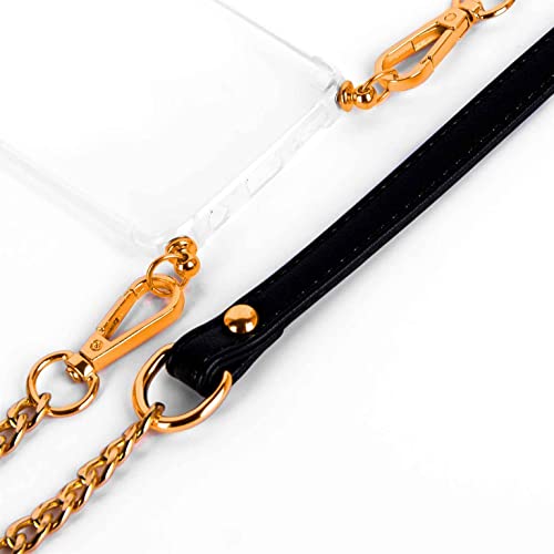 ONEFLOW Catena per cellulare rimovibile compatibile con Samsung Galaxy S22 - Custodia con nastro, custodia con catena in metallo da appendere, nero oro