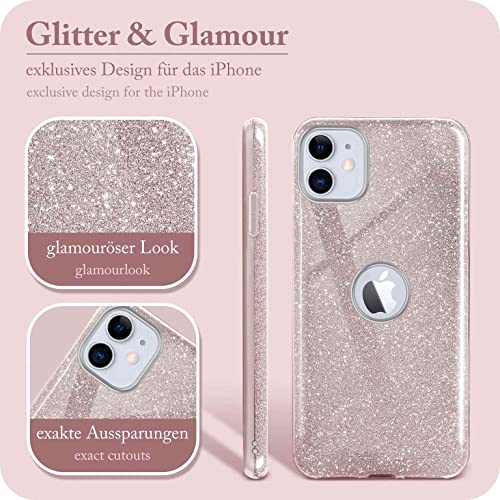 ONEFLOW Custodia con lustrini compatibile con Apple iPhone 11 custodia glitterata antiurto, custodia per telefono con strass diamantati, custodia brillante con lustrini, Brillo - Rosado