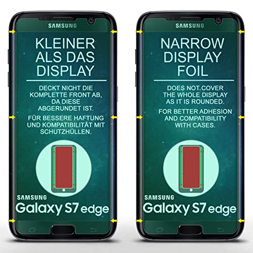 Vestibilità nota - La pellicola è consapevole piccolo tenuti, poiché il Samsung Galaxy S7 Edge ha bordi arrotondati. Si prega di notare che la pellicola vetro solo la piatta a livello del display copre. La forma della pellicola e le aperture sono state preciso adattata il Samsung Galaxy S7 Edge.
