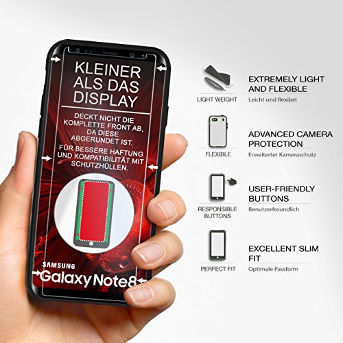 ONEFLOW Samsung Galaxy Note8 | Custodia in silicone e pellicola [set full screen a 360 gradi] pellicola protettiva in vetro con cover posteriore nera custodia sottile in vetro protettivo per Samsung