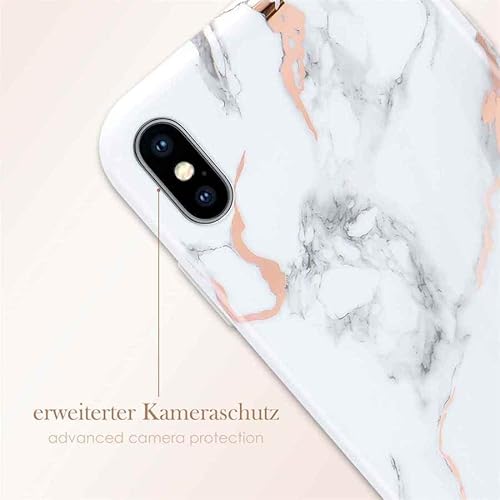 ONEFLOW Sense Case Custodia compatibile con Apple iPhone X/iPhone XS, effetto marmo, protezione schermo e fotocamera, in silicone con lustrini, Dedication