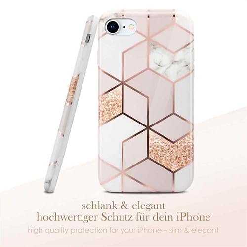 ONEFLOW Sense Case Custodia compatibile con iPhone 7/8 / SE 2 (2020), effetto marmo, protezione schermo e fotocamera, in silicone con lustrini, Devotion