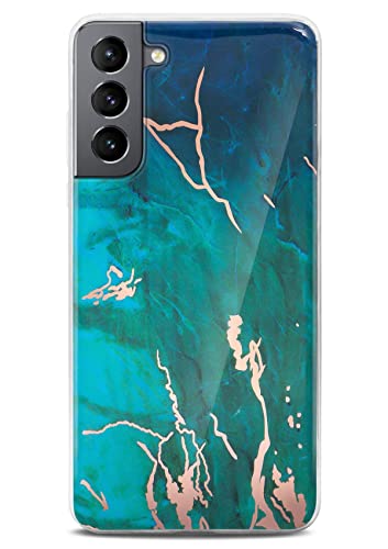 ONEFLOW Sense Case Custodia compatibile con Samsung Galaxy S21 Plus, effetto marmo, protezione schermo e fotocamera, in silicone con lustrini, Excitement