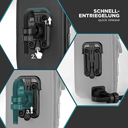 Alta compatibilità: il supporto per bicicletta è adatto per mountain bike, bici da corsa, scooter, e-bike + motorino e funge da supporto per moto, come borsa per il telaio o come borsa per il manubrio della bicicletta.