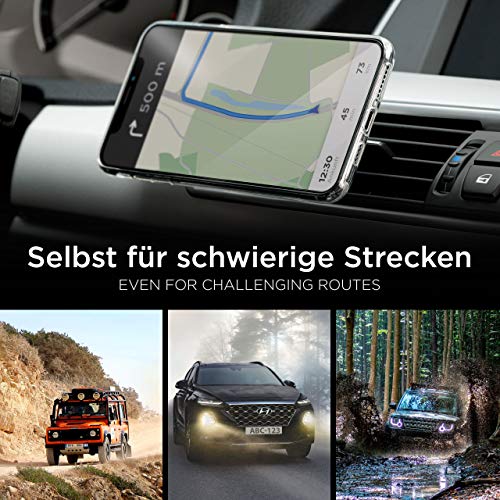 Navigazione GPS: con il supporto per auto lo smartphone diventa un navigatore in un batter d'occhio. Poiché il supporto per cellulare viene fissato alla bocchetta di ventilazione, può essere montato praticamente su qualsiasi auto o camion.